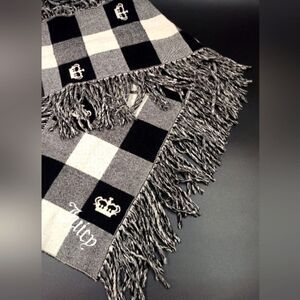 Juicy Couture fringe scarf in a checkerboard pattern.