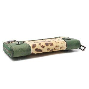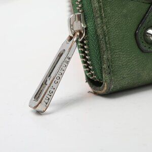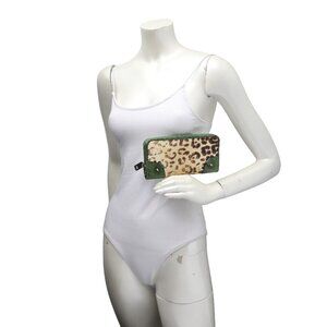 Juicy Couture Leather Leopard Print Wallet Zip Around Green Brown Animal Print