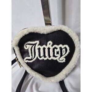 Juicy Couture Licorice Shear Genius Crossbody Black Heart White Faux Fur NWT