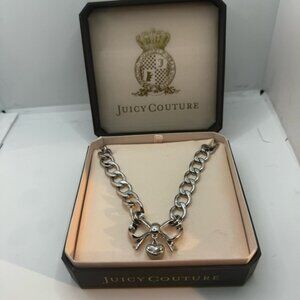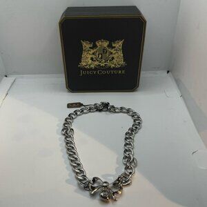 Juicy Couture NEW Vintage Y2K Bow Heart Chunky Chain Necklace Crystal stone Pave Logo Silver Choker Crown Toggle