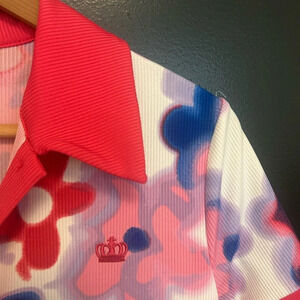 Juicy Couture NWOT dress size M floral, kinda disco feel! Brand new! Measurements in pictures. Larger fun collar- very bright and floral! Preppy feel