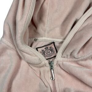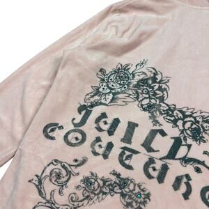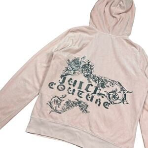 Soft pink hoodie with floral design. Juicy Couture logo on back. Comfortable and stylish.