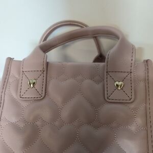 Style: Shoulder bag with quilted hearts. Shoulder strap is adjustable. snap closure on top.