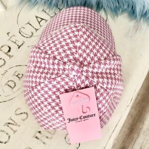 Juicy, Couture, Pink, and, White, Houndstooth, Cap, Hat, Patch Logo, OS, NEW