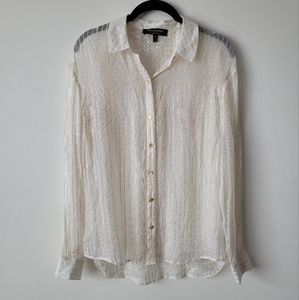 Juicy Couture Silk Button Down Shirt Sheer w Metallic Fiber Pinstripes XS