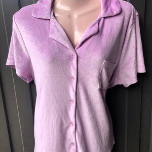 Juicy Couture TOP ONLY Lilac Purple Velour Sleepwear XL Short-Sleeve Button Down