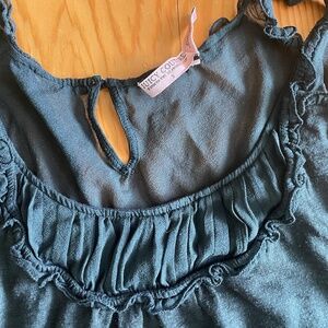 Gently used tank top juicy couture. This top has a sheer top and the body is jersey and lined. Can dress it up or down. Very flattering on I just don't wear it enough to keep it.