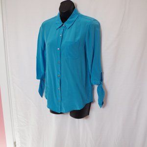 Juicy Couture Turquoise Silk button Front Blouse- Sz. 0