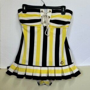 Juicy Couture Pleated Skirt Striped Nautical Swimsuit One Piece Pin-Up Retro