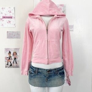 Juicy Couture Y2K Light Pink Velour Zip-Up Hoodie Size S — McBling / Mean Girls Aesthetic