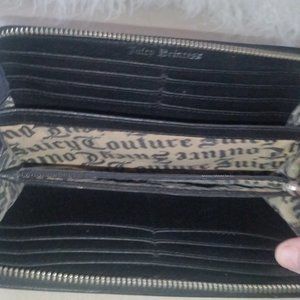 Juicy Couture Y2K zip around Princess scottie rhinestone velour/leatherwallet. Three separate compartments. Sixteen card slots! zippered cash pocket.