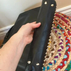 Juicy Couture black leather electric blue satin lining gold studs bag