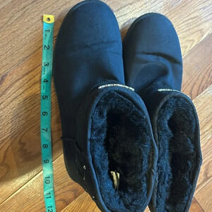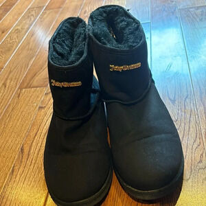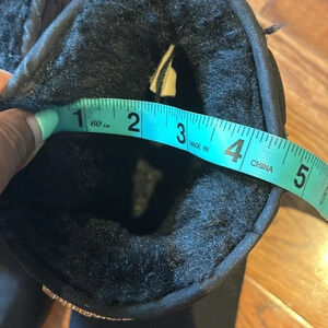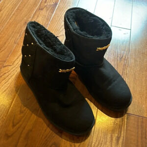 ⭐️🖤Super comfy style rhinestone gold tone logo details fuzzy faux fur lined booties . Approx measurements preloved good condition photographed, same day shipping from smoke free home