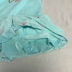 This enchanting Juicy dress showcases a vibrant blue and pink palette, ideal for all events. The sleeveless design is enhanced by a playful tutu-style skirt, featuring delicate pink embellishments. Perfect for adding a touch of whimsy and elegance to any performance.