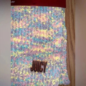NEW JUICY COUTURE MULTI COLOR WOOL SCARF WITH ROSEGOLD METAL LOGO