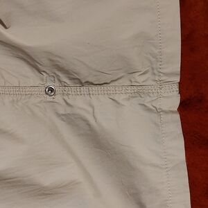 silver tone hardware, front zip w/ button & drawstring waist, double stitch details