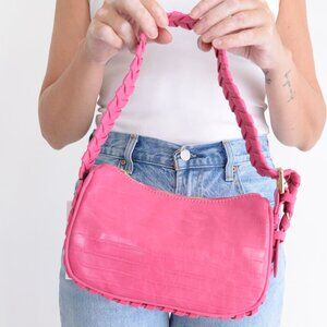 Jules Kae Delilah Fuchsia Pink Shoulder Bag Vegan Leather Matte Braided Purse