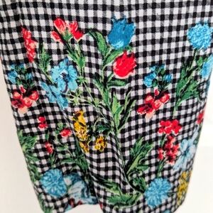 🔷Jules & Leopold Black and White Checkered Ankle Pants with Floral Embroidery