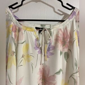 Jules & Leopold Floral Sheer Font Keyhole Tie Inner Liner Short Sleeve Blouse 3X