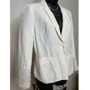 Jules & Leopold Womens Single Button Blazer Jacket Lace Cuff Size S White