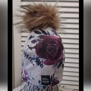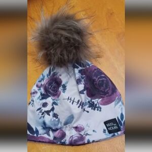 Jules & Nolan Floral Beanie with Faux Fur Pom Fleece Interior 12-18 Months