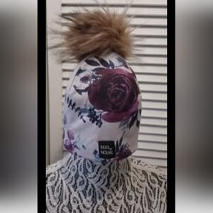 Stylish beanie featuring a floral design and a faux fur pom. Perfect for adding a touch of elegance to your little one's winter wardrobe.