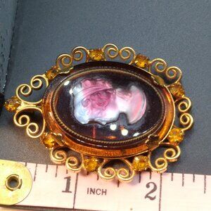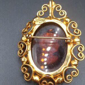 Juliana Cameo for Celebrity NY Vintage Glass Rhinestone Cameo Brooch Pendant