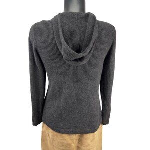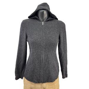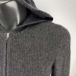 Julie & Jack 100% Cashemere Hooded Zip-up Double Grey Ribbed Cardigan Sweater L