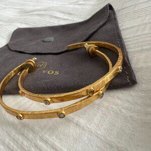 Pre-owned Julie Vos Crescent Stone Hoops in 24k Gold pleated and Cubic Zirconia.