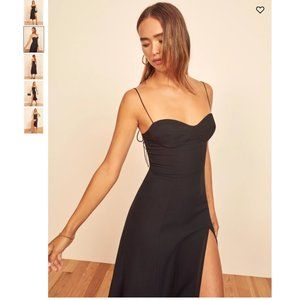 The Juliette is slim fitting throughout the bodice with a relaxed skirt. This midi length dress has adjustable tie straps so you can fit it to your liking. There's also a side slit on the skirt to give your legs some breathing room. This dress runs slightly small.