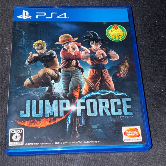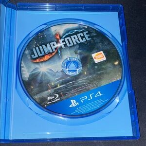 Jump Force game disc for PS4. Features popular anime characters. Comes in a blue case.