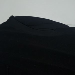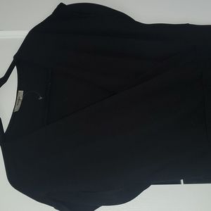 Easy jumper, nice flattering fit, has stretch. Criss cross front with rolled short cuff at sleeve. Can be belted, does not come with belt. Firs medium to large.