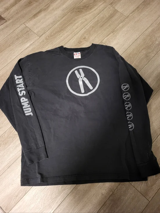 A sweet band /recording company tee on a late y2k baysides tag a Jumpstart records longsleeve with all the good sleeve hits