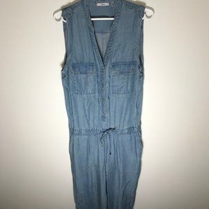 Dex Faux Denim Jumpsuit. Size Medium. Took the tags off but has never been worn. No rips, tears, or defects. Comes from a smoke free home.