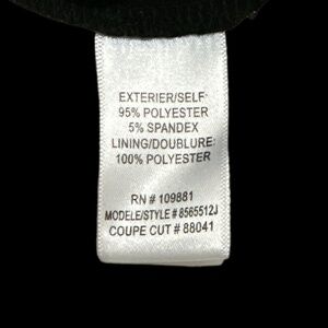 * 95% Polyester, 5% Spandex (Lining 100% Polyester)