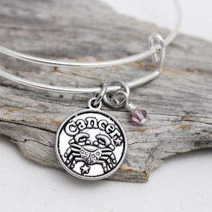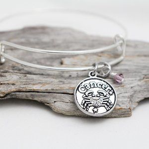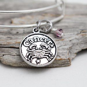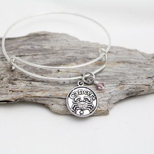 June Cancer Adjustable Charm Bangle - Handmade Zodiac Bracelet