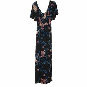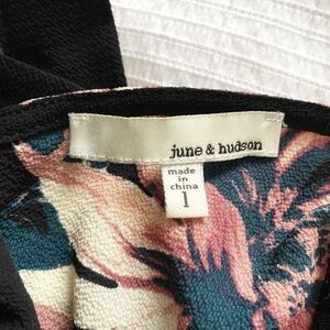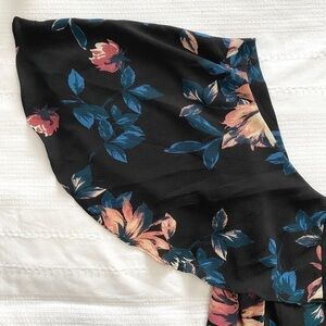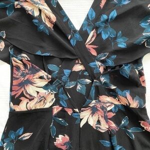 June & HUDSON BLACK FLORAL WIDE LEG RUFFLE CRISS CROSS JUMPSUIT - L