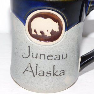 Juneau Alaska Gray Blue Pottery Style Bear Large Coffee Mug