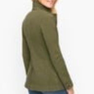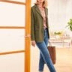 This twill, light cotton blazer is great casual wear for the Fall. Length is 25 ½ inches. Material is 79% Cotton, 20% Modal 1% Spandex. Lining is 100% Cotton