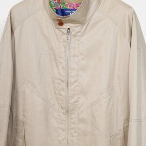 Experience the versatility of the Junya Watanabe Man Comme des Garçons SS2022 reversible blouson jacket in beige, with a multicolour paisley trim. Crafted from high-quality cotton, this jacket offers a comfortable and stylish fit. The reversible design allows for easy styling, perfect for any occasion. Get ready to elevate your outerwear game with this must-have piece.