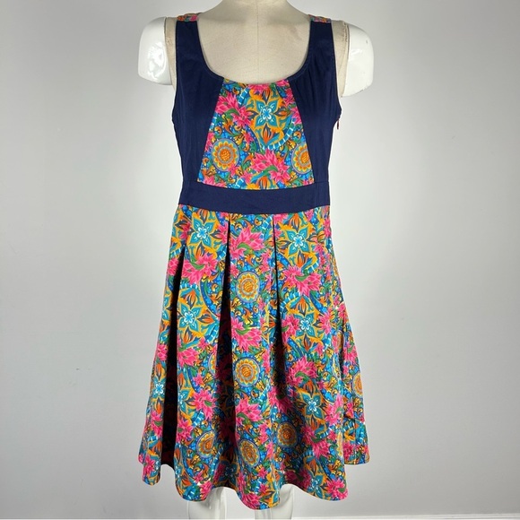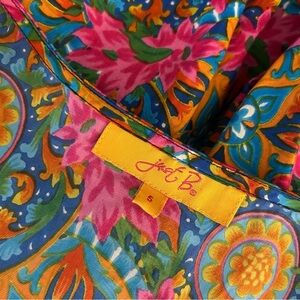 Just B Orange Blue Paisley Sleeveless Mini Flowy Party Dress S