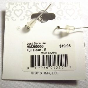 Just Because Full Heart Pierced Earrings, Hallmark Gold Crown Collection NOS