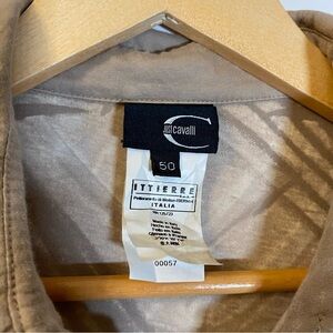 Just Cavalli Graphic Polo White Tan Roberto Italy Button Collar Shirt Logo 50