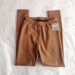 Just Cozy caramel color faux fur-lined leggings. Their irresistibly soft faux fur-lined leggings, giving you stretch, comfort, and durability.