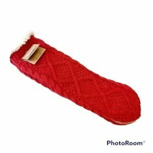 Just Cozy Reading Socks Slippers Red Cable Knit Fur Lined Size 5/6/7/8 NEW