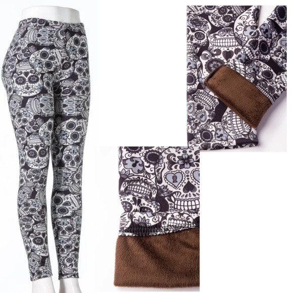 π€Just Cozy Sugar Skull Fleece-Lined Leggings π€ M/L Cozy up #spookychic ποΈπ²β