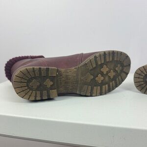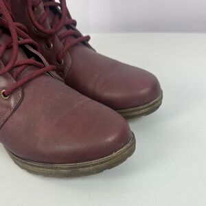 Just Fab Nyaling Knit Cuff Lace Up Combat Burgundy Faux Leather Boots Size 9