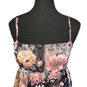 Made in Italy, this dress features a dreamy layered design with a delicate floral print in shades of pink, purple, and black. The spaghetti straps and smocked back provide a comfortable, flattering fit, while the tiered ruffles add a playful, feminine touch.