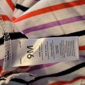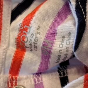 NWT Just One You by Carter's striped romper white with red, purple & black striped, snaps around the inseam, elastic around the legs, cap sleeves. 2 snaps on the back. silky flower sewn on.