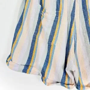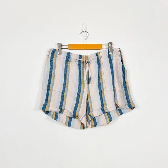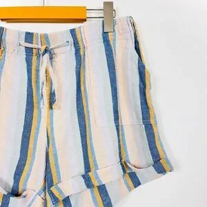 Just Using Multi-Coloured Striped Linen Drawstring Shorts